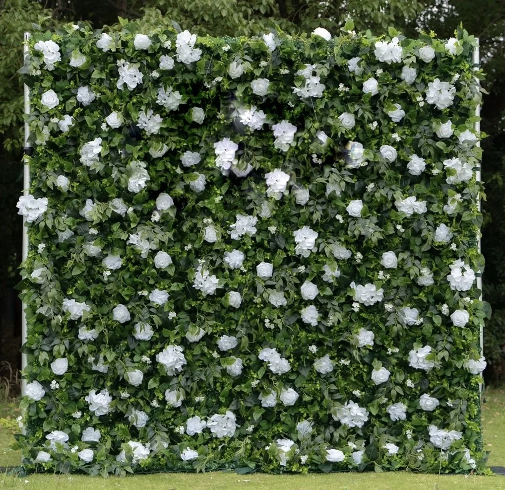 The Luna Wall is a breathtaking display of all-white florals, featuring an array of roses, hydrangeas, and delicate blossoms.